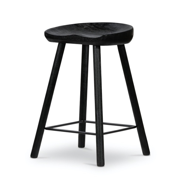 Sculpted for comfort. Crafted from rich parawood, black iron stretchers lend an updated look to simply styled counter seating finished in a sleek matte black.