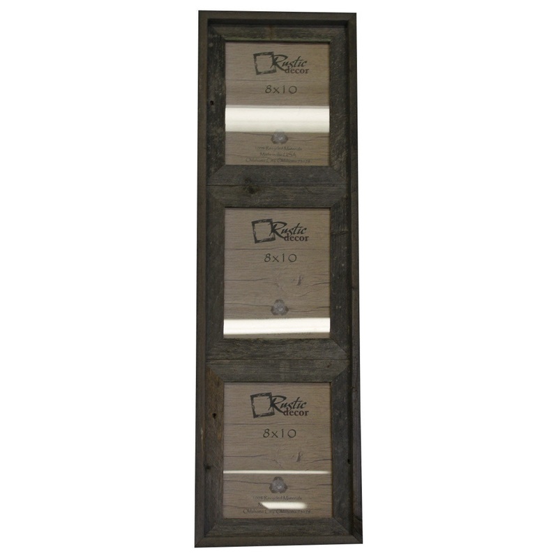 This rustic triple 8-by-10 inch frame is manufactured from 100% authentic weathered barn wood allowing the rustic charm of the natural knots, nail holes and color variations to show through. This frame will hold three of your favorite 8-by-10 photos or pri