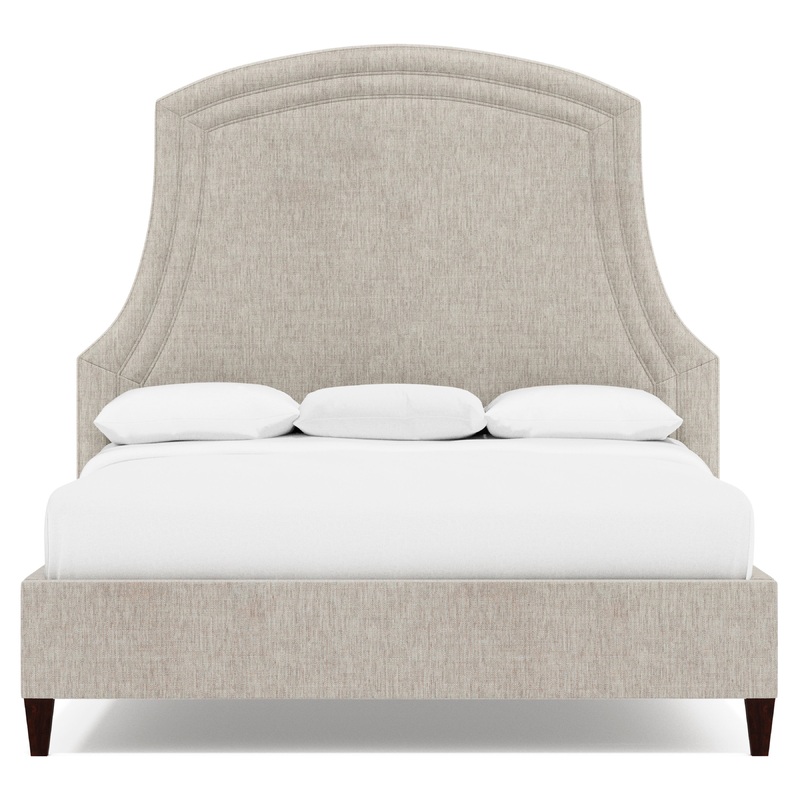 A sweeping arched headboard gives the fully upholstered Bayford bed an elegant, classic silhouette. For a neatly tailored look, two rows of welt trim accentuate the graceful contours of the headboard. The tapered wood feet are available in Espresso or Smok
