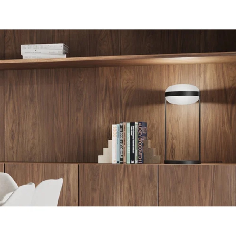 Designed by Werner Aisslinger for B.lux, the Beaded T table lamp is a sophisticated blend of modern aesthetics and functional lighting, available in smoked or white opal glass finishes.