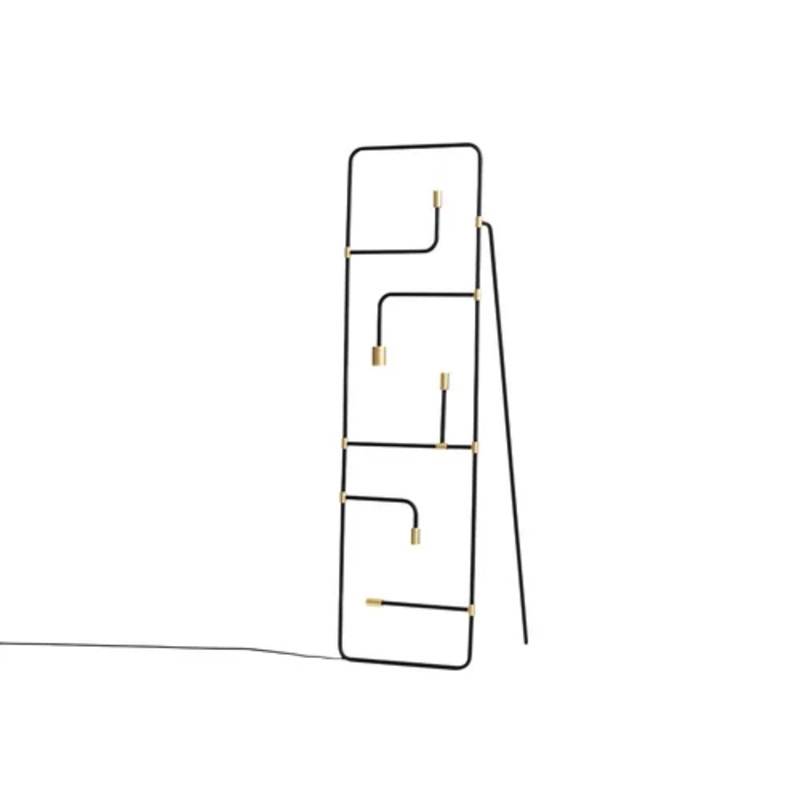 The beautiful collection Beaubien presents strong black lines bend in and out of space, moving effortlessly between simplicity and ornamentation. Round and cubic brass connectors complete the lamps structures and add a rich material contrast to the powder coated rods. The collections industrial and graphic aesthetic is imbued with a palette of influences, from traditional Chinese screens to the Memphis movement. Each influence strengthens the collection, creating nuance within its timeless character.