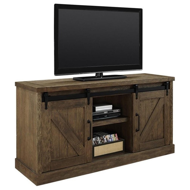 Beaumont Lane Wood TV Stand in Weathered Oak – Rustic – Entertainment Centers And Tv Stands – by Homesquare