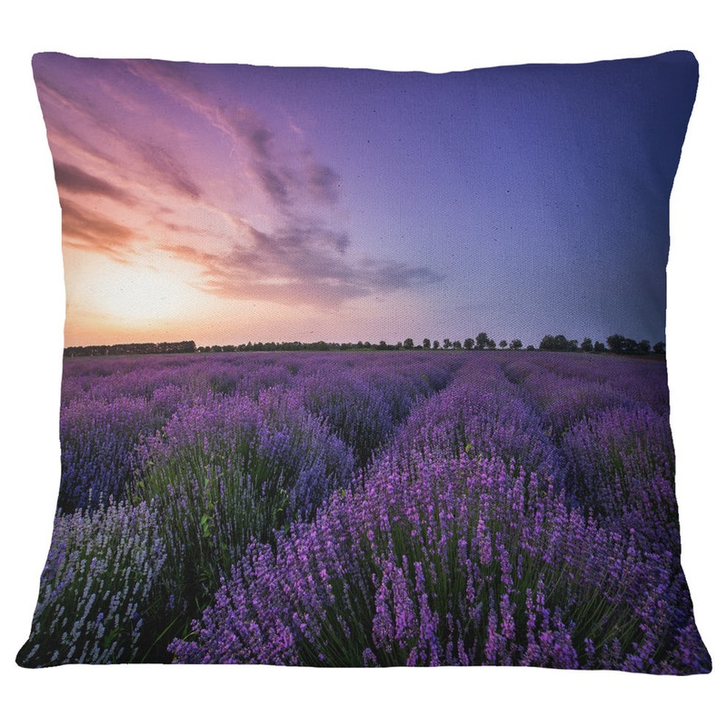 Beautiful Lavender Flowers At Sunset Floral Throw Pillow, 18″x18 – Farmhouse – Decorative Pillows – by Design Art USA