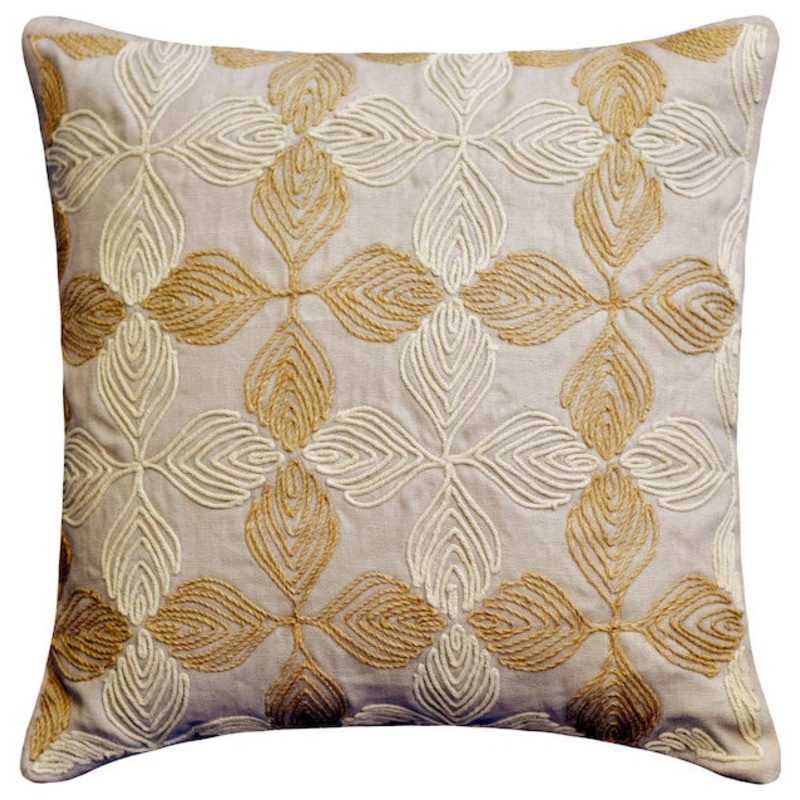 Beige Linen Jute Cord Embroidery Throw Pillow Cover – Jute Curl, 14″x14″ – Contemporary – Decorative Pillows – by The HomeCentric