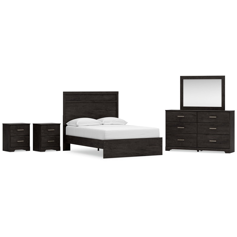 Belachime Full Panel Bed with Mirrored Dresser and 2 Nightstands