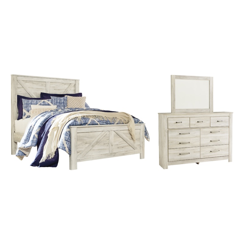 Bellaby Queen Crossbuck Panel Bed with Mirrored Dresser