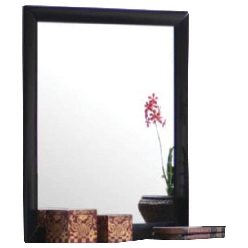 -Features: Beveled mirror with simple sleek frame.