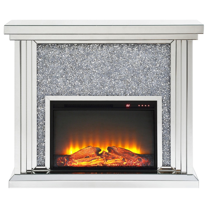 Live lavishly and sip on a glass of bubbly as the fire crackles in this Electric Fireplace. Constructed from durable Composite Wood and fully lined with beveled mirror glass, this piece boasts an electric fireplace with touch control technology and temperature control remote. The dusted face of the fireplace with faux crystals inlay glisten and gleam with an air of leisurely beauty, while its mirrored panels offer splendid grandeur. Set this piece against the wall of your living room and create a scene of indulgence by adorning the mantle with your treasured family portraits, prized works of art, or fragrant flowers. Note: Other featured items in image except this fireplace are sold separately.