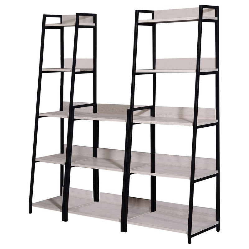 Benzara BM211104 Wooden Bookshelf with 5 Open Compartments, Washed White & Black – Industrial – Bookcases – by Homesquare