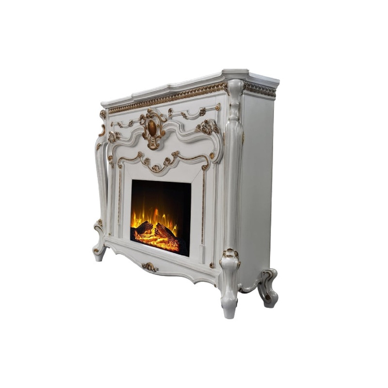 A classic spin on a traditional accessory, this fireplace in antique white finish provides a unique, charming flair to your living room. It has an electric fireplace beneath the scalloped design molded top that provide a realistic flame effect and warmth f