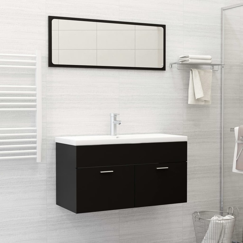 Berkfield 2 Piece Bathroom Furniture Set Black Engineered Wood