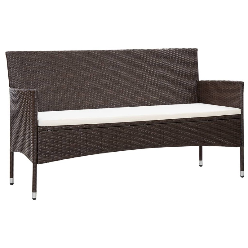 This poly rattan 3-seater sofa is uniquely designed to be a stylish seating area for your garden or patio. Premium material: Thanks to the water-resistant PE rattan, the patio sofa is easy to clean and suitable for daily outdoor use.Sturdy frame: The steel frame makes the bench sturdy and stable. It is also lightweight and easy to move around to suit any setting.Comfortable cushion: It is also delivered with a highly comfortable, thickly padded seat cushion for the ultimate comfort. The low-maintenance polyester cover can also be removed and washed. Note:In order to extend the life of your outdoor furniture, we recommend you to clean it regularly and do not leave it outdoors without protection unnecessarily.Clean: Use a mild soap solution.Storing: If possible, store in a cool, dry place indoors. If the product is stored outdoors, protect it with a waterproof cover. Wipe and dry the excess water or snow from flat surfaces after a rain or snowfall. Allow sufficient air circulation to avoid moisture-related damage.