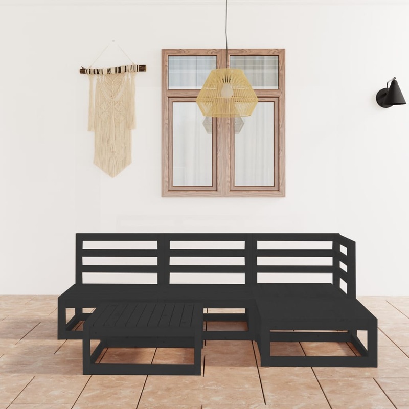 Berkfield 5 Piece Garden Lounge Set Black Solid Wood Pine