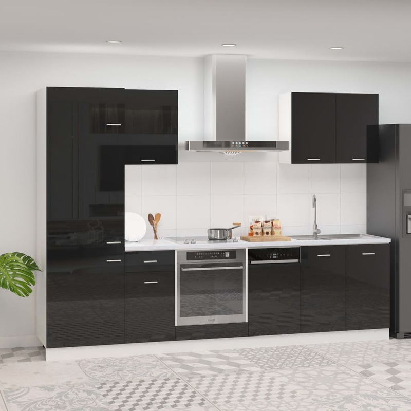 Berkfield 7 Piece Kitchen Cabinet Set High Gloss Black Engineered Wood