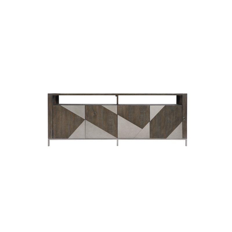 The Logan Square collection is casually sophisticated, combining modern minimalism with a cool retro sentiment and 70s revival style. Elevate your media game with the Eastman Entertainment Console in textural pine with geometric design. This purposeful piece delivers enough stash space for all your electronics, game consoles, and more in two spacious cabinets behind four push-to-open doors. Two open compartments are tucked beneath the top to hold cable boxes and modems.