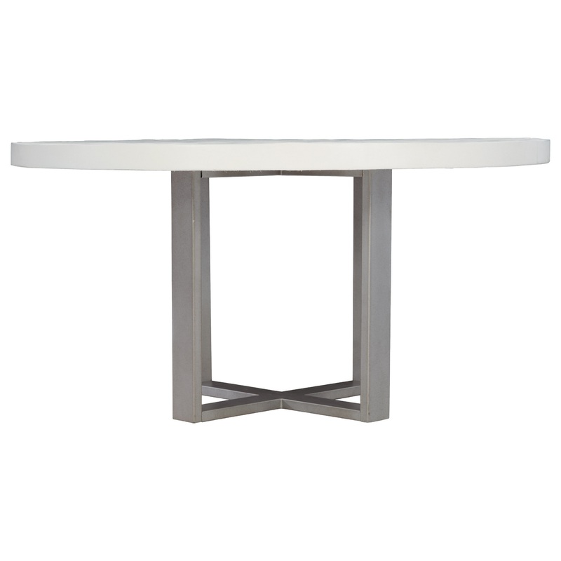 The Logan Square collection is casually sophisticated, combining modern minimalism with a cool retro sentiment and 70s revival style. Cast concrete collides with striking steel for a strong style statement in the dining room or eat-in kitchen. The Merrion Round Dining Table features a powdery Bone finish top supported by a strong tubular steel base in Gray Mist. The table’s round shape makes for a more intimate dining experience.