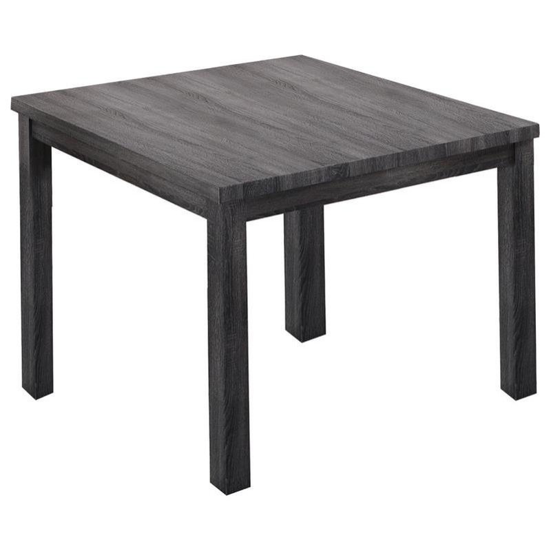 Add a farmhouse and transitional style to your dining room with this Antique Gray Wood finish. Made of solid and manufactured wood. The counter height table is in a square shape and can fit up to 6 counter height chairs. Features: -Finish: Antique Gray (Wo