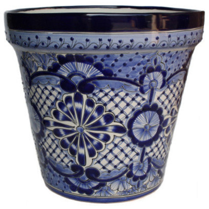 This Talavera ceramic pot is painted with cobalt blue on Mexican White. The bottom diameter is about 11 wide. This ceramic pot is just an example of the exquisite beauty the Mexican craftsmen put on each item they create. It is handcrafted and hand-painted, which means that no pots are the same! There might be small differences in size, weight, design and colors. If you want to delight somebody special with an unique handcrafted gift, this is what you are looking for!”