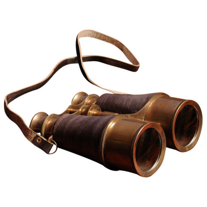 This binocular is made of high quality brass. Each component is crafted with the finest craftsmanship. It comes with antique looking leather overlay & leather strap. The strap fits loosely around your neck. Available in antique brass finish. This is a great item to use while sailing, hunting, or sight seeing. The dimensions are: L: 5.25 inches, W: 5 inches, H: 2.25 inches.