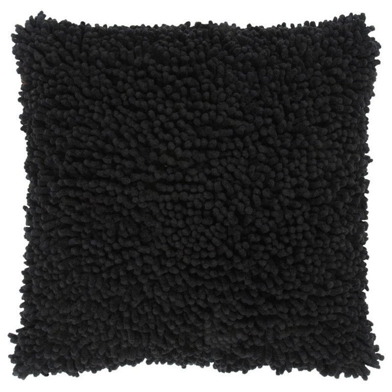 Layer your living room with this trendy Black Textured Modern Throw Pillow that will add a dimension to your interior decor while being a plush accent on the sofa or seating space. Featuring strands of heavily textured fibers in black suspended from the surface, this pillow is meant to add a luxurious touch to any modern or casual space. Crafted from a blend of cotton and chenille fibers for enhanced durability and utmost softness that will ensure maximum comfort to your neck and back. This down-filled pillow features a durable duck cotton fabric back with a hidden zipper closure for a seamless finish, making the pillow easy to fill and clean whenever needed. Give your living space a modern look with a welcoming feel as you bring home this soft and cuddy throw pillow to pair with neutral decors. 18′ x 18′ x 6.25′