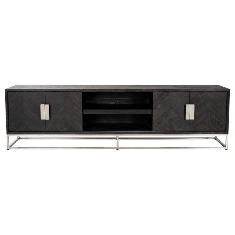 TV sideboard 220 Blackbone silver 4-doors is made of oak and stainless steel. The black TV sideboard from the Blackbone collection gives your interior an elegant, yet sturdy touch. Also available in 185 cm or with gold.