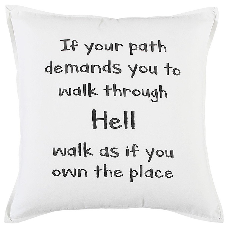 The motivational sentiment flaunted on this Black White Own The Place Decorative Throw Pillow makes it an eye-catching accent to adorn your modern living room. The words printed in black with embroidered accents create a classic contrast over the while base while reminding you to stay strong and keep moving forward no matter what life throws at you. The small flange edge frames the pillow with a seamless finish and the monochrome palette makes it an ideal piece of decor to complement a wide variety of interior styles and decors. Crafted from top-notch cotton fabric with a polyfill insert for enhanced durability and softness. The solid matching back bears a hidden zipper closure for convenience. Make a statement in your living room with this thoughtful decorative throw pillow to induce a sense of positivity in the atmosphere. 20″ x 20″ x 6.25″