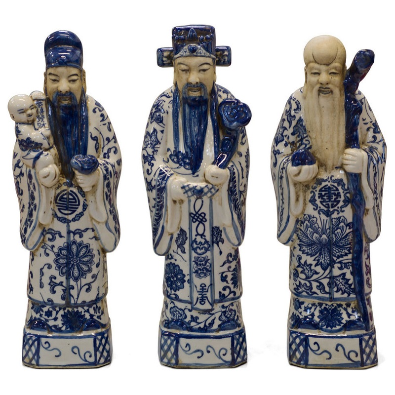 Blue and White Porcelain Three Lucky Gods – Asian – Decorative Objects And Figurines – by China Furniture and Arts