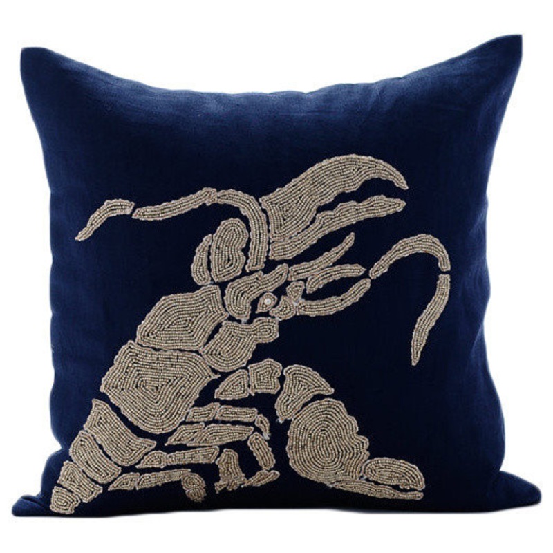 Lobster At The Shore is an exclusive 100% handmade decorative pillow cover designed and created with intrinsic detailing. A perfect item to decorate your living room, bedroom, office, couch, chair, sofa or bed. The real color may not be the exactly same as
