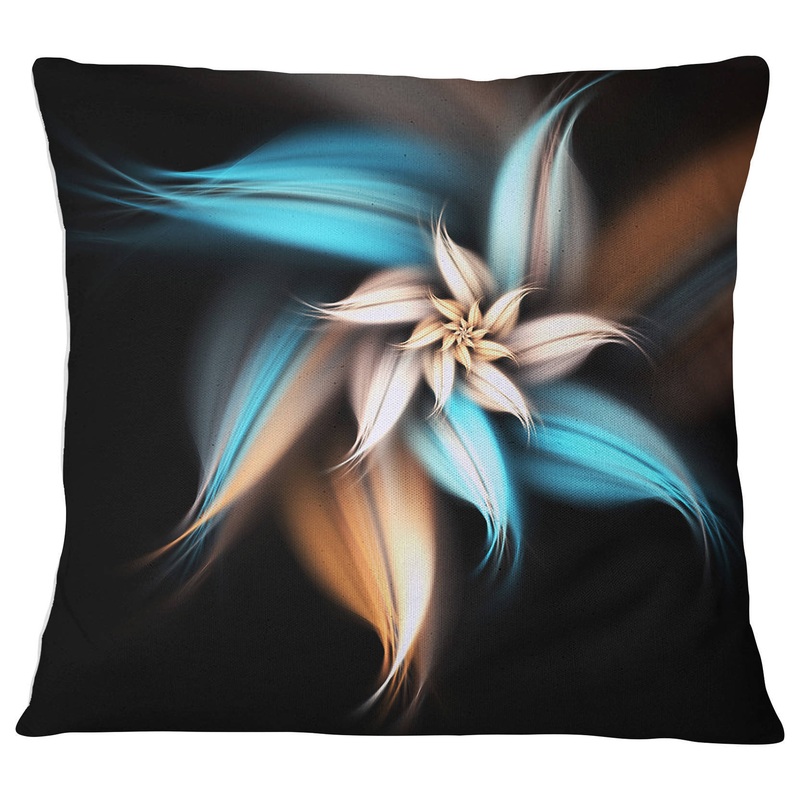 Blue Brown Digital Art Fractal Flower Floral Throw Pillow, 18″x18″ – Contemporary – Decorative Pillows – by Design Art USA