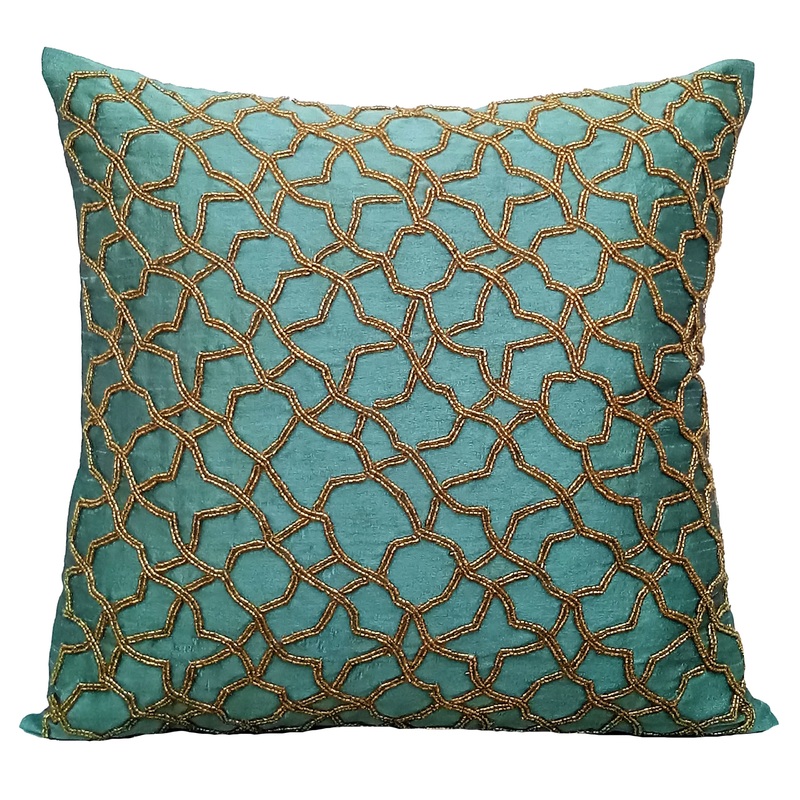 Teal Geometry is an exclusive 100% handmade decorative pillow cover designed and created with intrinsic detailing. A perfect item to decorate your living room, bedroom, office, couch, chair, sofa or bed. The real color may not be the exactly same as showin