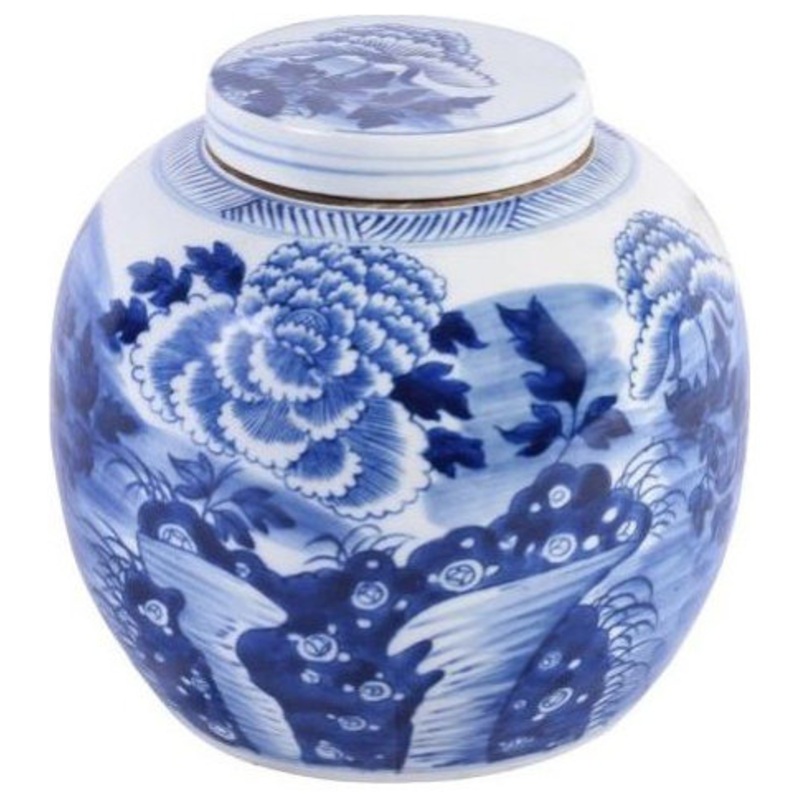 Blue & White Peony Ancestor Jar Model # (MPN)1607-2Product ID159421846Manufactured ByTao AccentsSold ByHouzzSize/WeightW 9" / D 9" / H 9" / 8 lb.ColorBlue & WhiteMaterialsPorcelainAssembly RequiredNoCategoryDecorative Jars And UrnsStyleAsianCollectionTao A