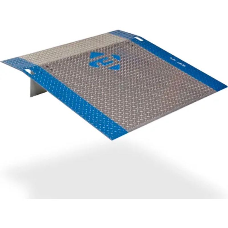 Bluff HEAVY-DUTY ALUMINUM DOCK PLATELightweight aluminum dock plate has integral handle holes for easy lifting and a slip-resistant diamond tread surface. Beveled entry and exit edges, 11" apron and 11 degree crown angle offer a smooth transition between t