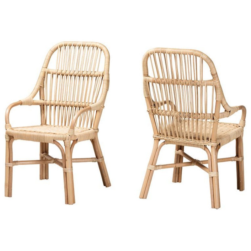 Bohemian Natural Brown Rattan 2-Piece Dining Chair Set – Midcentury – Dining Tables – by Bison Commerce