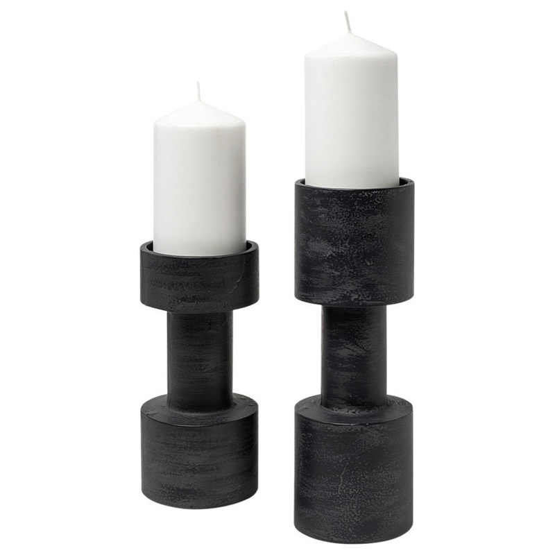 Bolton is a set of two metal candle holders with a brushed black finish.