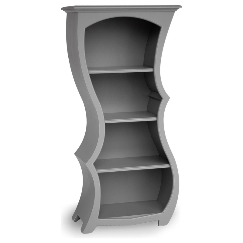 Joyful, moving design and ample storage make Bookcase No.9 a great balance between form and function. The flowing curves of this piece make it impossible to take your eyes off. Plentiful, open storage space makes a great display for your favorite books or objects.Like all of our pieces, Bookcase No.9 is made to order in the color of your choosing. Select one of the displayed colors, or select your own color from our many paint or stain color options. We make all of our furniture out of high quality, domestic birch panels with solid birch edging on the tops and shelves. Each piece is carefully painted or stained (on all 4 sides) and the lines of the piece are distressed by hand. Then each piece is carefully protected with an industrial quality, environmentally friendly clear coat for lasting beauty. The piece also features leveling feet to give it a solid stance on uneven floors.