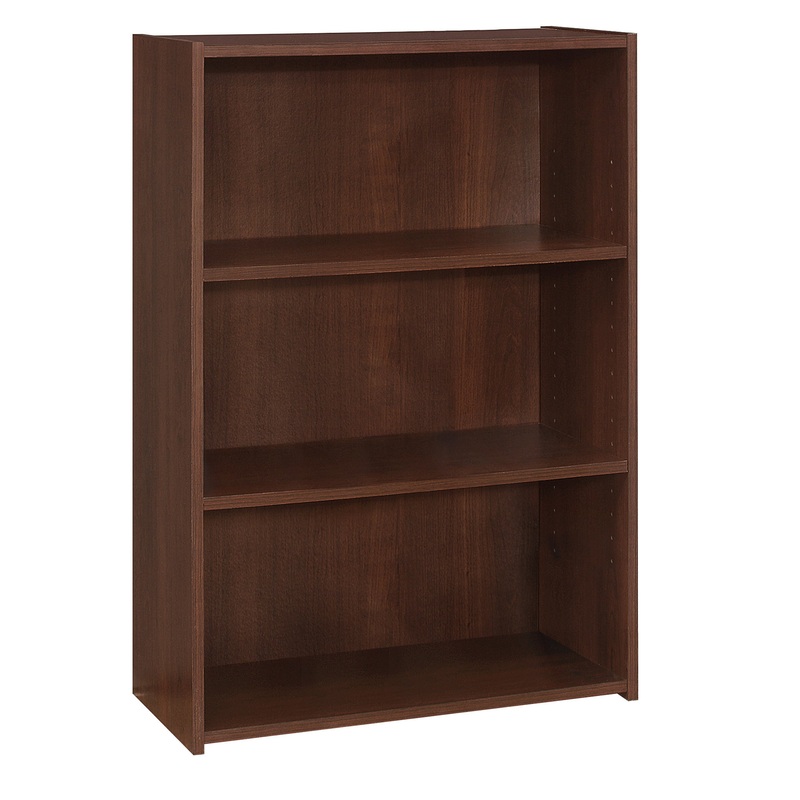 BOOKCASE - 36"H / CHERRY WITH 3 SHELVESThis 3-shelf bookcase in a simple, clean and space-saving design makes it a versatile storage option for any room in your home. The solid adjustable shelving allows for various sized objects to be displayed in your ow