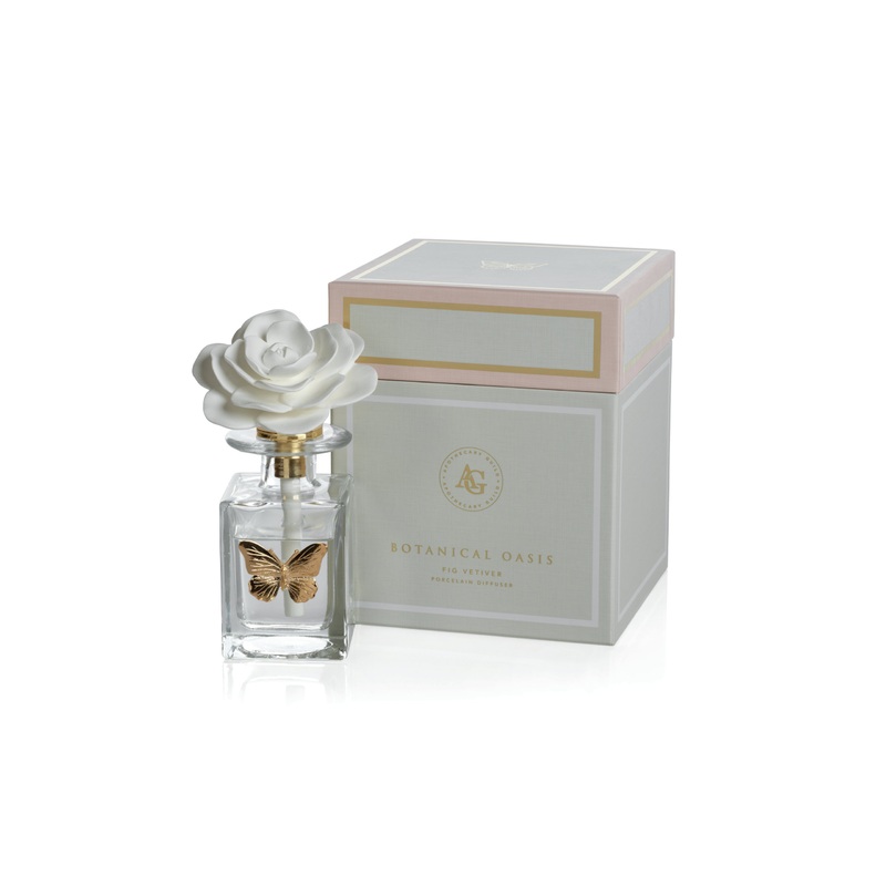 Botanical Oasis Fig Vetiver Porcelain Diffuser, Butterfly – Home Fragrances – by Zodax