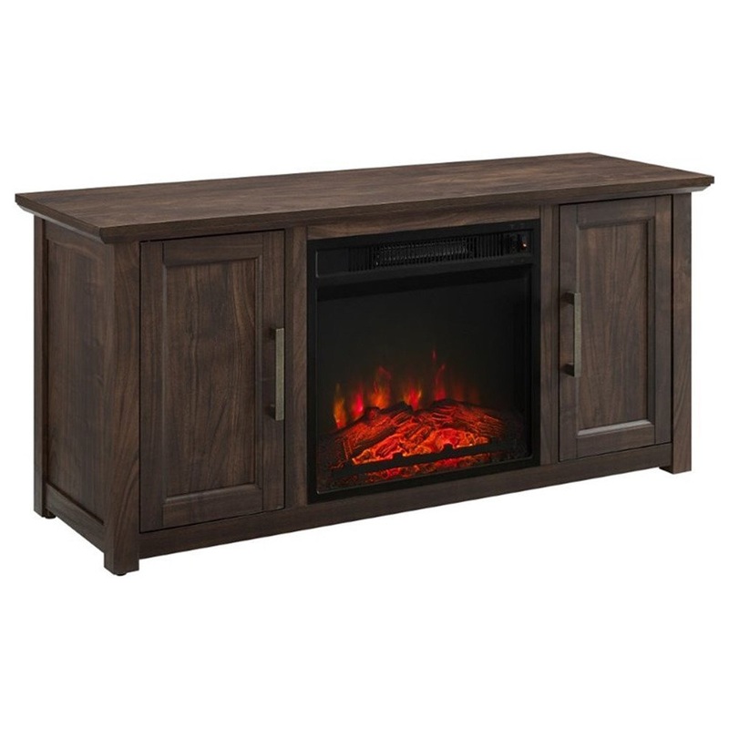 Bowery Hill 48″Rustic Low Profile TV Stand with Fireplace in Dark Walnut – Transitional – Entertainment Centers And Tv Stands – by Homesquare