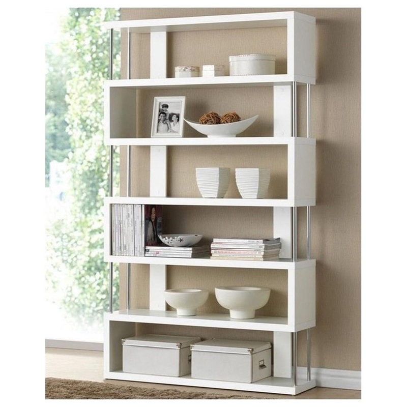 This artsy, modern bookcase gets you organized with style. Our Bookcase is made of white paper veneer over an engineered wood frame and features chromed steel side supports. Not only does this modern display shelf house books, but it is also the perfect pl