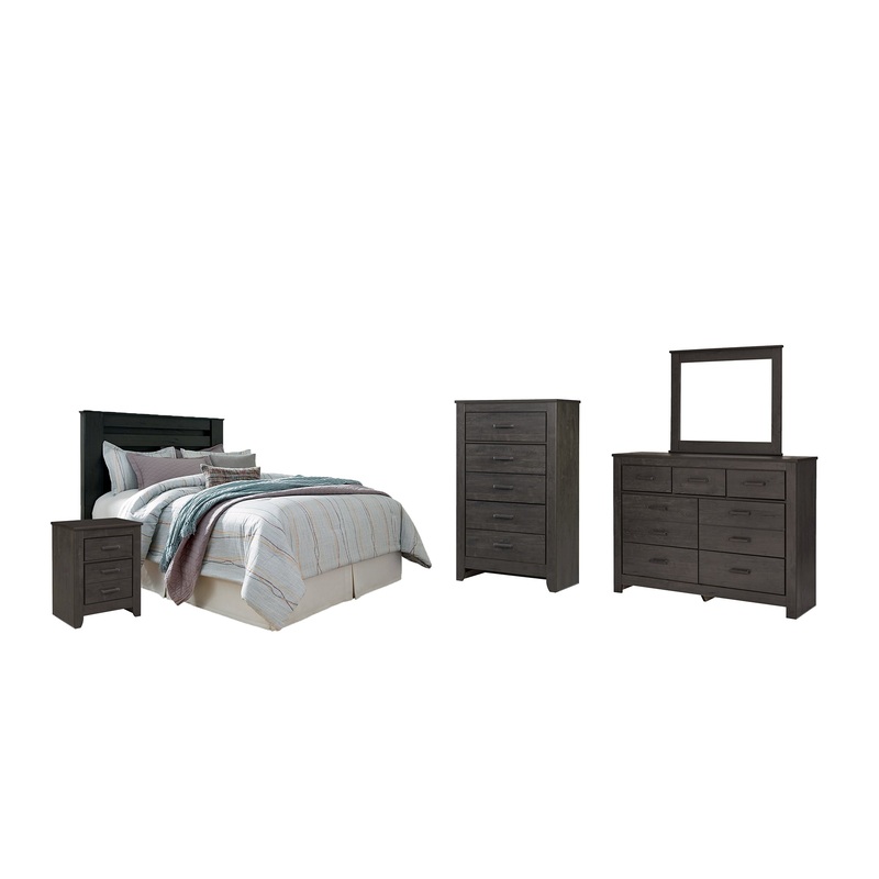 | Details | B249-46: Made with engineered wood (MDF/particleboard/plywood) and decorative laminate for the right balance of affordability and durability, Dark charcoal finish over replicated oak grain, Linear pulls with dark pewter-tone finish, 5 smooth-gliding drawers, Safety is a top priority, clothing storage units are designed to meet the most current standard for stability, ASTM F 2057 (ASTM International), Drawers extend out to accommodate maximum access to drawer interior while maintaining safety, Assembly required, B249-68: Hardware not included, Made with engineered wood (MDF/particleboard/plywood) and decorative laminate for the right balance of affordability and durability, Dark charcoal finish over replicated oak grain, ” bolts are needed to attach headboard to existing bed frame, Bolt length depends on thickness of your bed frame, Assembly required, B249-92: Made with engineered wood (MDF/particleboard/plywood) and decorative laminate for the right balance of affordability and durability, Dark charcoal finish over replicated oak grain, Linear pulls with dark pewter-tone finish, 2 smooth-gliding drawers, Assembly required, B249B1: Includes dresser and mirror, Made with engineered wood and decorative laminate, Dark charcoal finish over replicated oak grain, 7 smooth-gliding drawers; 3 drawer sizes, Linear pulls with dark pewter-tone finish, Mirror attaches to back of dresser, Safety is a top priority, clothing storage units are designed to meet the most current standard for stability, ASTM F 2057 (ASTM International), Drawers extend out to accommodate maximum access to drawer interior while maintaining safety, Assembly required, |