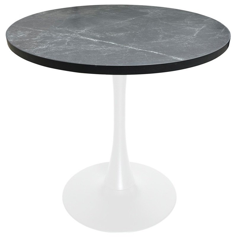 Bristol Dining table, White Base with 36 Round Marbleized Black MDF top – Contemporary – Dining Tables – by Bison Commerce