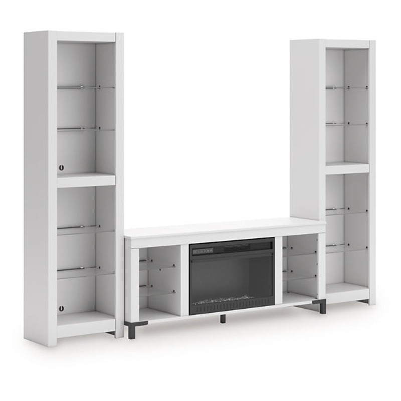 Level up your gaming experience and make movie nights to remember. This entertainment center with fireplace extends your entertainment beyond the screen. Its built-in fireplace brings the heat, synchronizing with LED backlighting on the assorted shelves. And you can customize the vibe with three trendy color options: blue, white and red. Modern function. Captivating, cool style. With this entertainment center, revamp your homes recreational hub like never before.