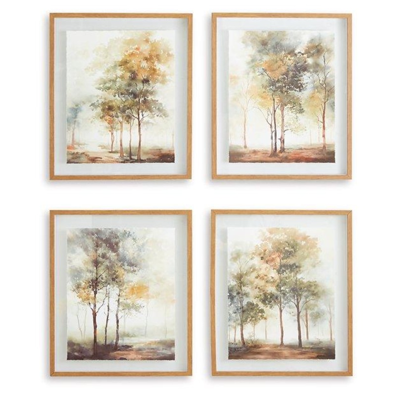 Embrace a new style with this wall art set. Featuring splendid renditions of countryside trees, these framed prints on glass add a touch of nature's beauty to your design scheme.Set of 4Framed print on glassBrown frameD-ring bracket for hangingVertical han