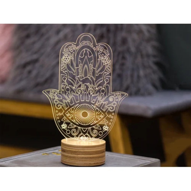 Bulbing Hamsa Table LampHamsa is a table lamp proposed by Studio Cheha, with a birch base and acrylic structure.Each Bulbing lamp is made from a thin sheet of acrylic glass, which has been laser engraved to create light-emitting 3-D forms. Once slotted int