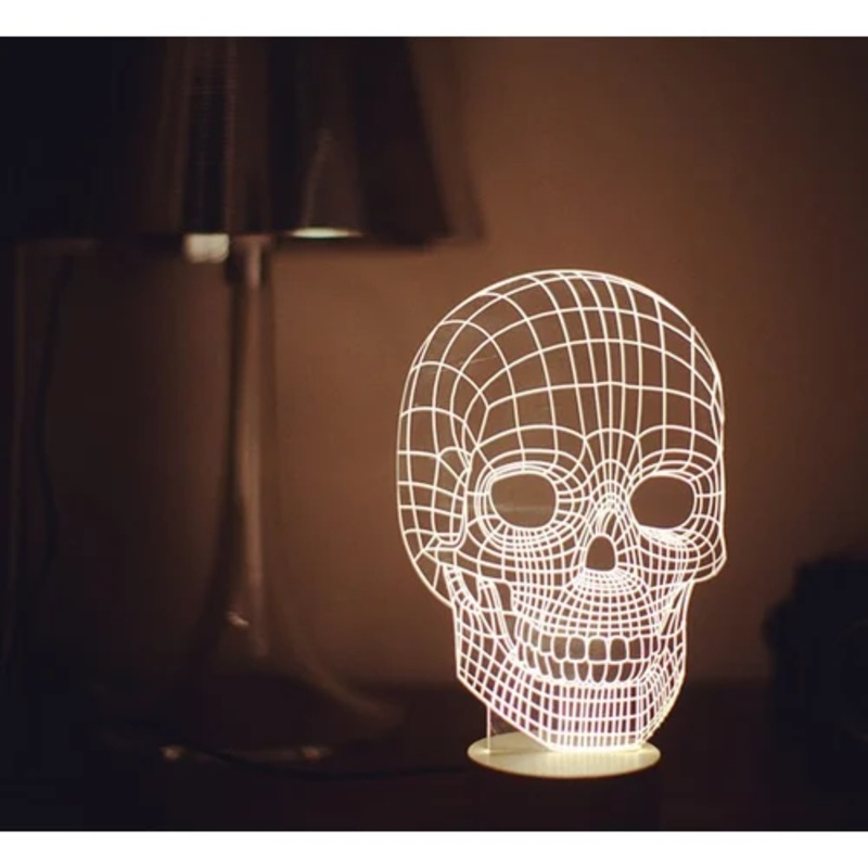 Bestseller, at MoMA, Museum of Modern Art, bulbing Scull is a lamp that offers a dynamic and decorative light that will enhance your space while creating a powerful optical illusion. Each BULBING lamp is made from a 2-D sheet of acrylic glass that has been laser engraved to create light-emitting 3-D forms. With bulbing Scull will have not only a table lamp but a work of contemporary art.