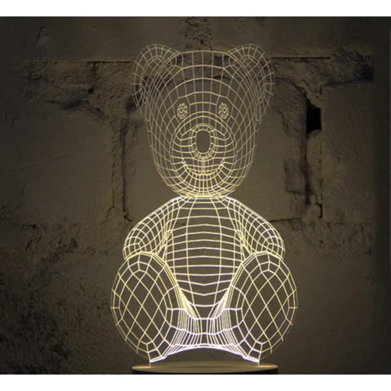 Bulbing TeddyBear Table LampBulbing TeddyBear lamp is a beautiful lamp produced by Studio Cheha. Each Bulbing lamp is made from a thin sheet of acrylic glass, which has been laser engraved to create light-emitting 3-D forms. Once slotted into the sturdy wo