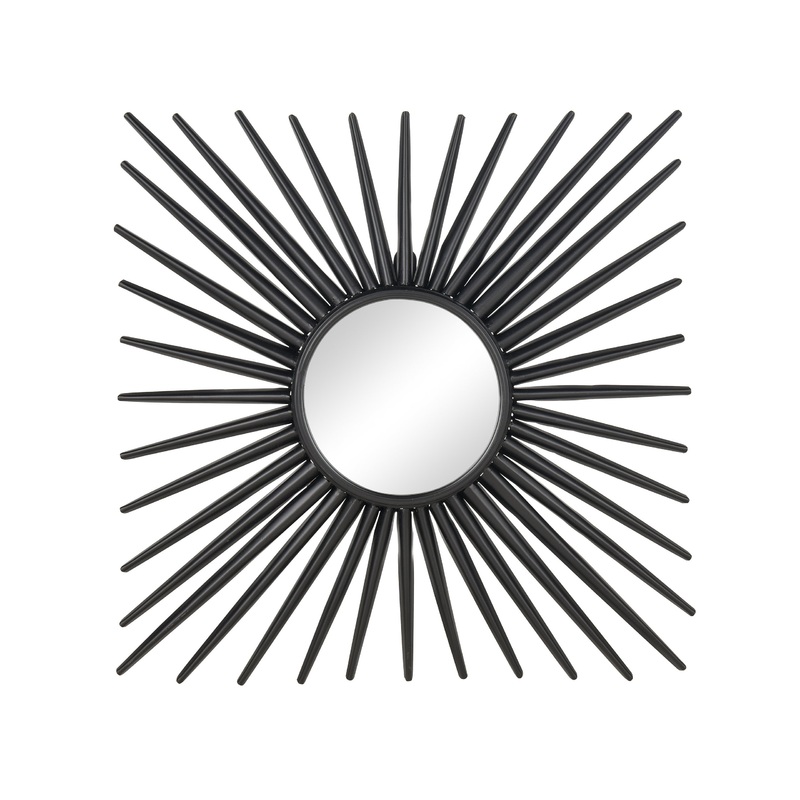 The Burst Mirror is a sunburst-style mirror with a small circular mirror at its center. Black painted metal "rays" emit from the central mirror and form a square frame. Group in multiples for maximum visual impact. Model # (MPN)S0036-11308Product ID1955748