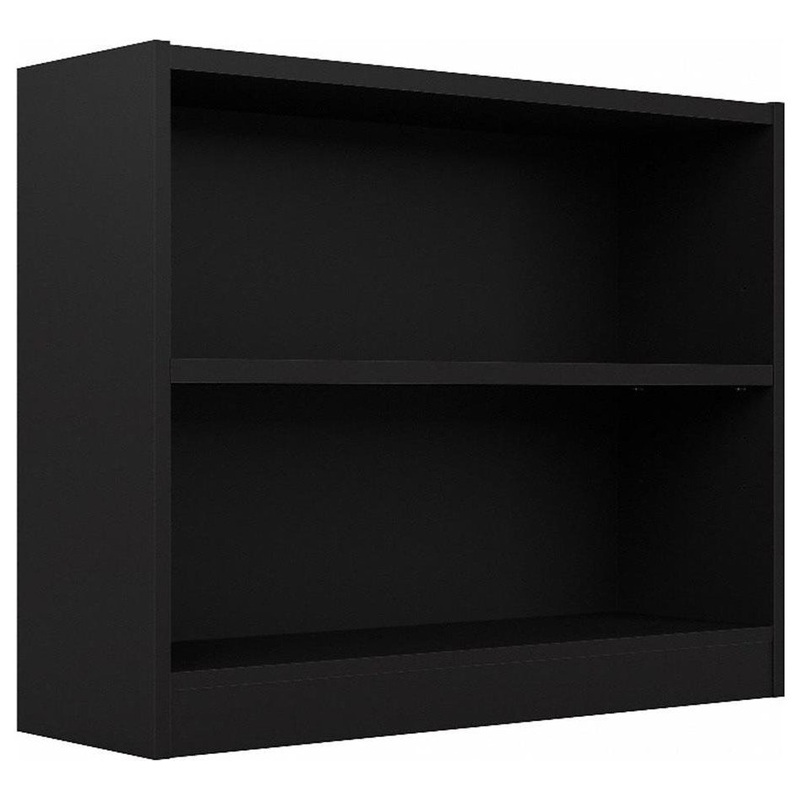 The Bush Furniture Universal Small 2 Shelf wood Bookcase provides a versatile organization solution that makes it easy to show off your personal library or brighten up the room with pictures and decorations. A one-inch thick adjustable shelf prevents sagging and moves up and down to accommodate larger items like binders and photo albums while one fixed shelf gives the low bookcase added stability. Shelves have a weight capacity of 50 pounds each, so storing magazines, hardcover books, or vinyl records is never a problem. Tip Guard(TM) safety features include a stable design and wall attachment hardware for family-friendly safety in any space. This small bookshelf is tested to meet ANSI/BIFMA quality standards for safety and performance and is backed by a 1 Year Warranty.