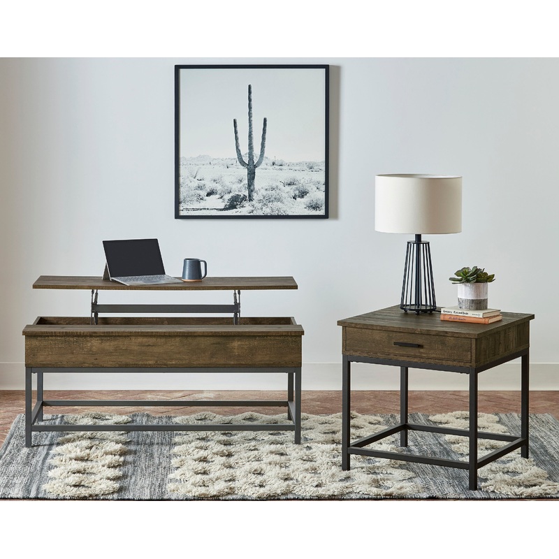 This table set includes a stylish coffee table and an elegant end table, both finished in a warm brown oak veneer. Together, they create a cohesive and functional addition to your living space. The coffee table features a spacious top and a versatile lift-top design, while the end table provides a smooth top and a lower shelf for extra storage. Built for durability and practicality, this set combines modern aesthetics with essential utility, offering a complete solution for your living room needs.