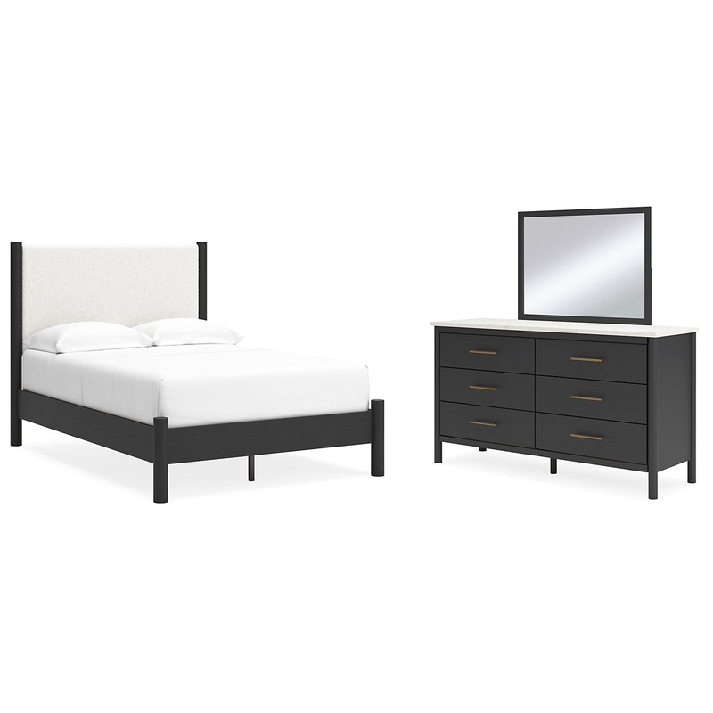 Cadmori Full Upholstered Panel Bed with Mirrored Dresser